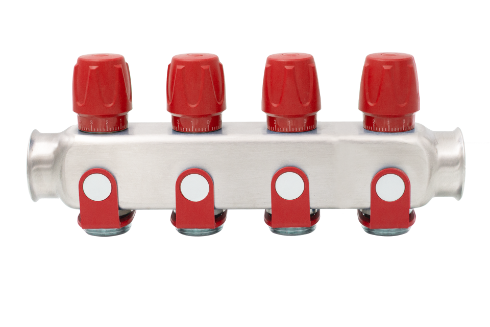 Rozsdamentes szelepes osztó 4 körös 1"x3/4" piros