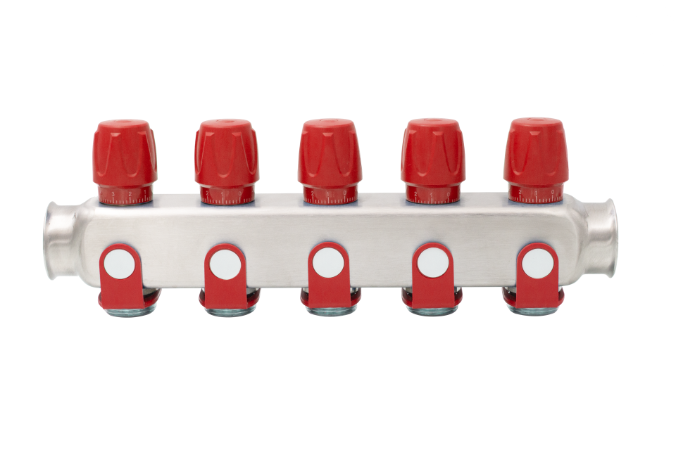 Rozsdamentes szelepes osztó 5 körös 1"x3/4" piros